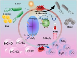 Yufeng Zheng, Hanpeng Liu, Zhaoyang Li, Shengli Zhu, Hui Jiang, Zhenduo Cui, Xiangmei Liu,* Eco-friendly multifunctional CeO2/ZnMn2O4 heterojunction with robust photocatalysis for rapid bacteria-killing and highly effective eradication of formaldehyde simultaneously, J. Environ. Chem. Eng., 2025, 23, 116945. https://doi.org/10.1016/j.jece.2025.116945