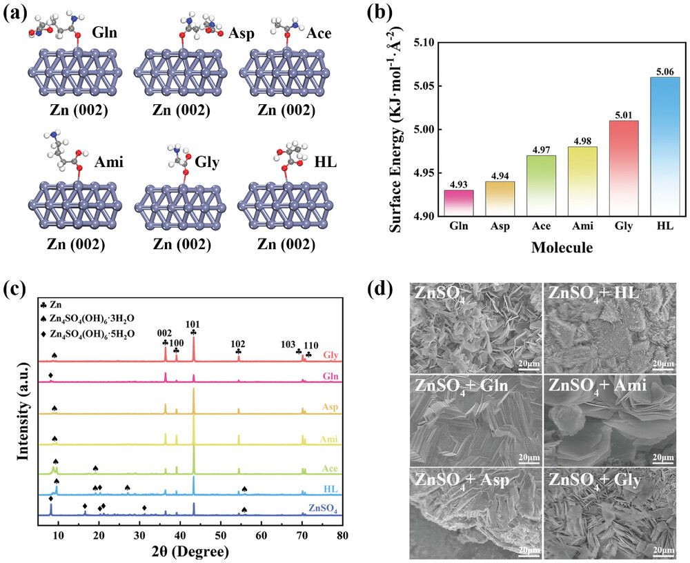 Zhonghui Gao,* Shengli Zhu,* Organic Molecular Amino Acids Additives Containing Amide Groups for Uniform Zinc Deposition in Aqueous Zinc Ion Batteries, Small, 2025, 21, 2409556. https://doi.org/10.1002/smll.202409556